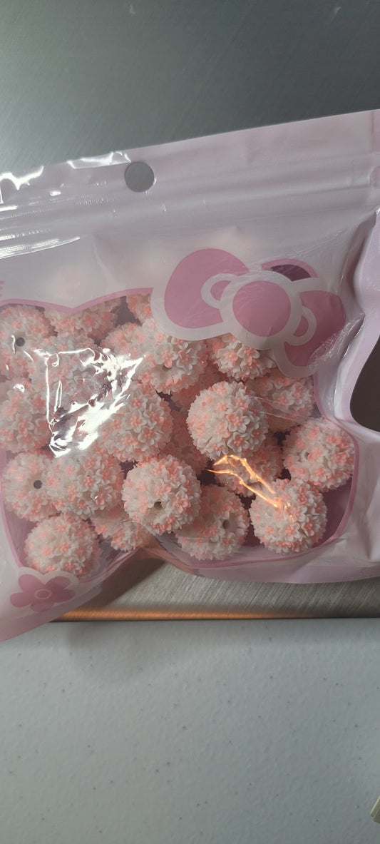 18mm handmade beads white with pink center- 10pcs